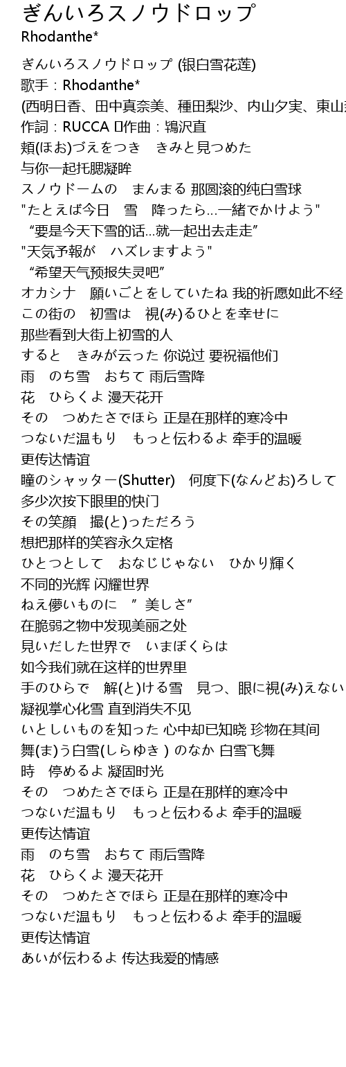 | [00:02.35] | ぎんいろスノウドロップ (银白雪花莲) |