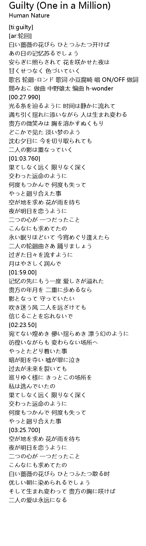 | [03:42.760] | 白い蔷薇の花びら ひとつふたつ散る时 |