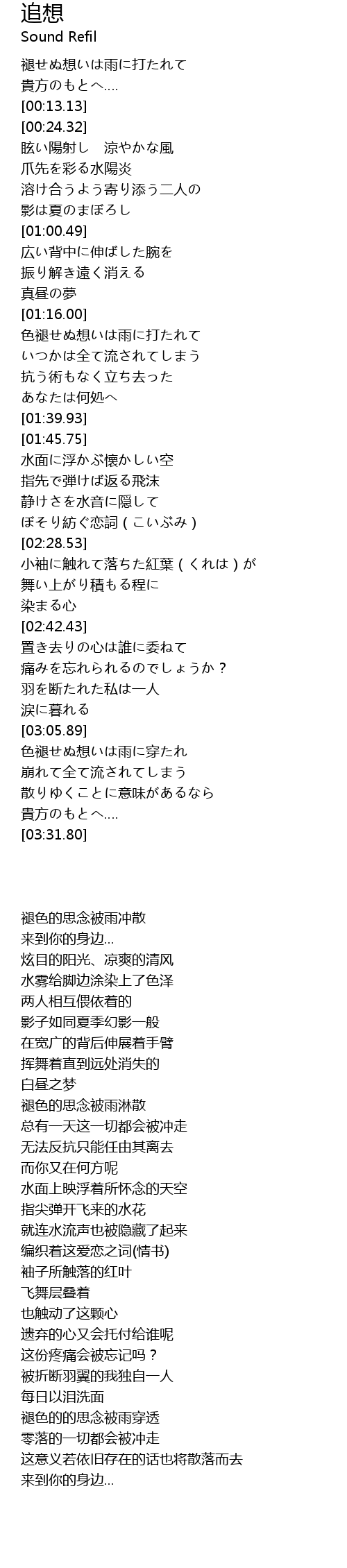 | [02:35.18] | 舞い上がり積もる程に |
