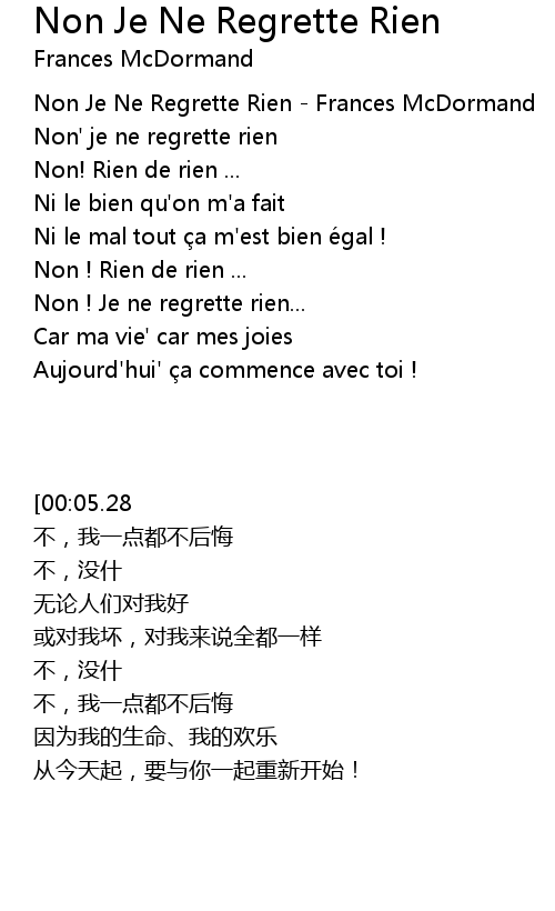 | [00:05.28] | Non Je Ne Regrette Rien Frances McDormand |