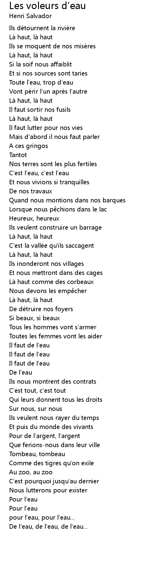 | Song | Les voleurs d'eau |