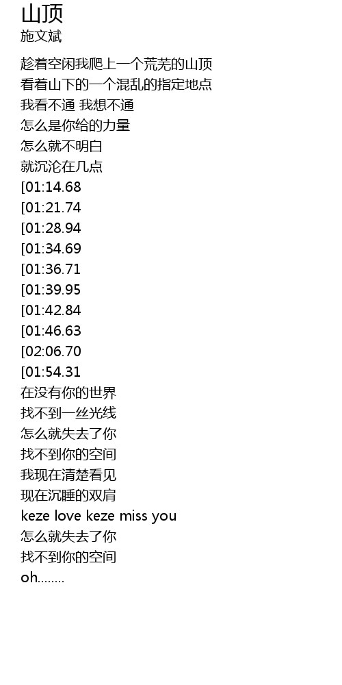 | [03:12.37][02:06.70][01:50.49] | keze love keze miss you |
