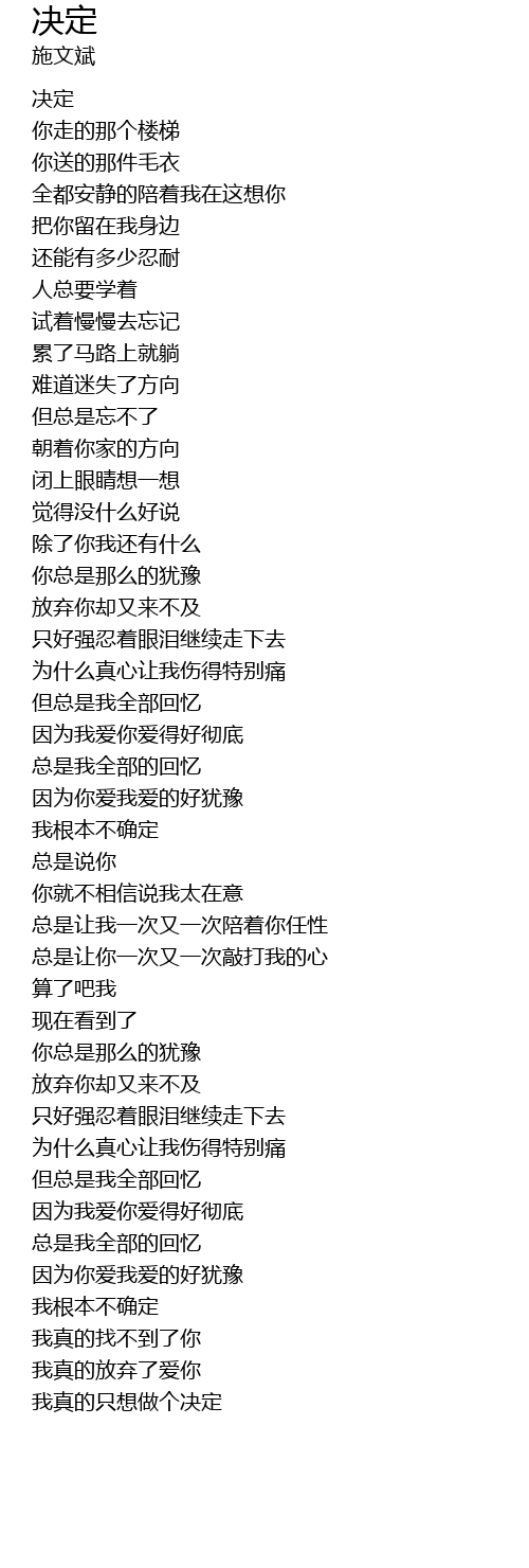 | [04:07.05] | wǒ zhēn de zhǐ xiǎng zuò gè jué dìng |