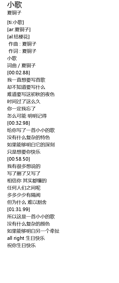 | [00:00.00] | 小歌 |