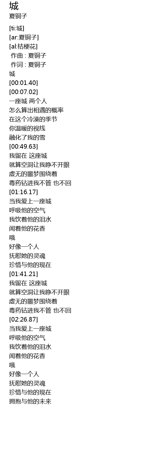 | [02:05.65] | wǒ liú zài zhè zuò chéng |