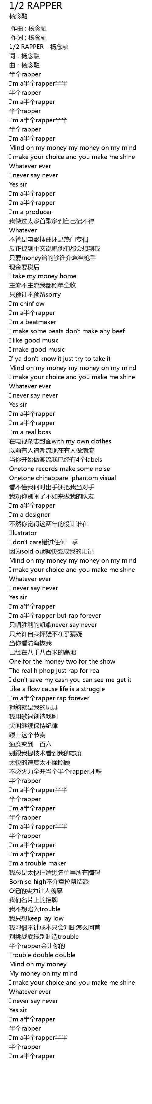 | [00:46.93] | I'm a半个rapper |