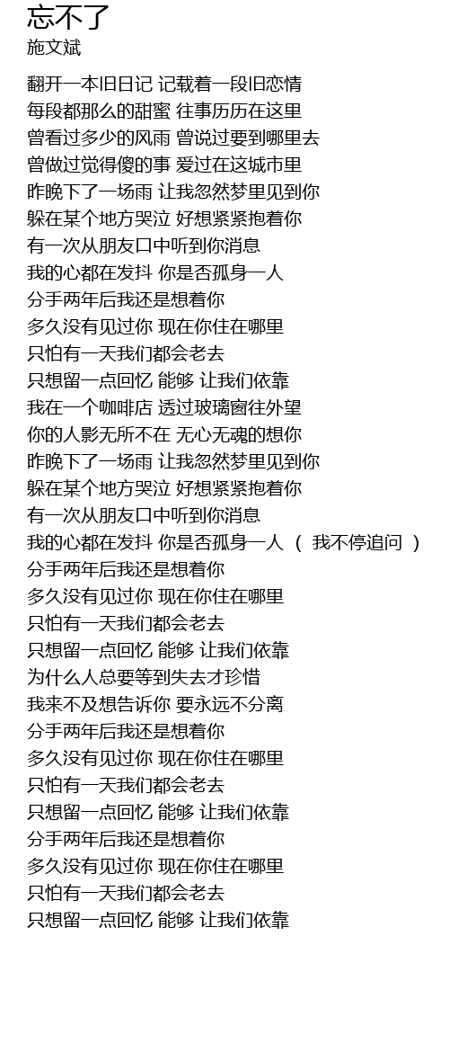 | [00:21.730] | 翻开一本旧日记 记载着一段旧恋情 |