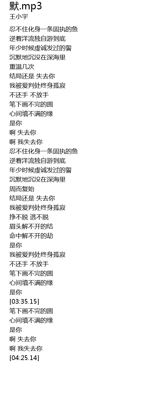 | [03:52.94] | 啊 失去你 |