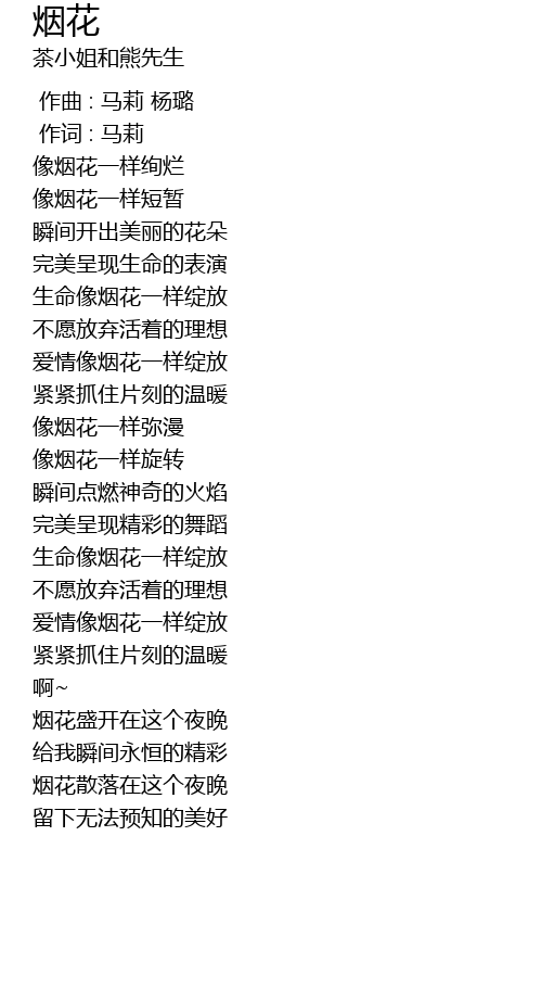 | [01:05.78] | 爱情像烟花一样绽放 |