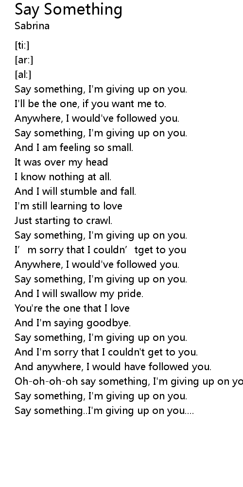 | [00:45.60] | Say something, I'm giving up on you. |
