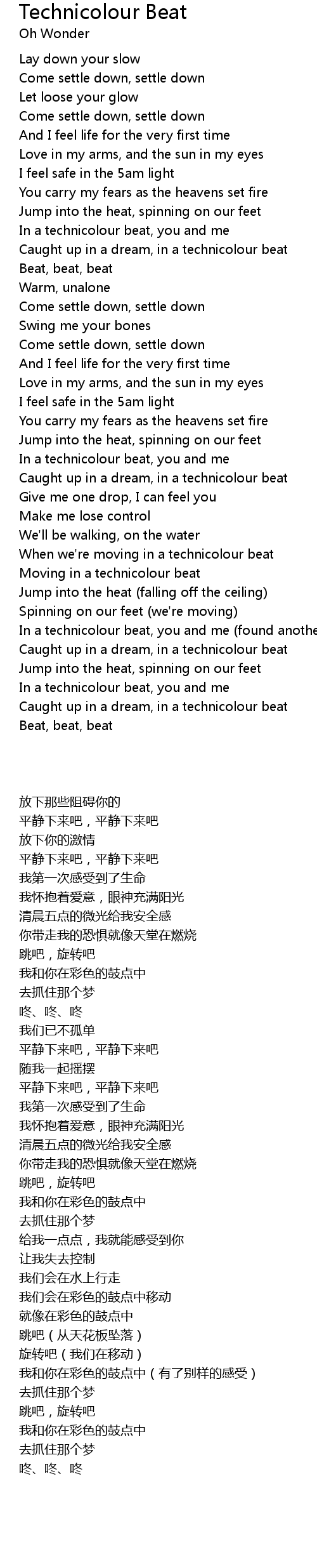 | [02:26.38] | In a technicolour beat, you and me (found another feeling) |