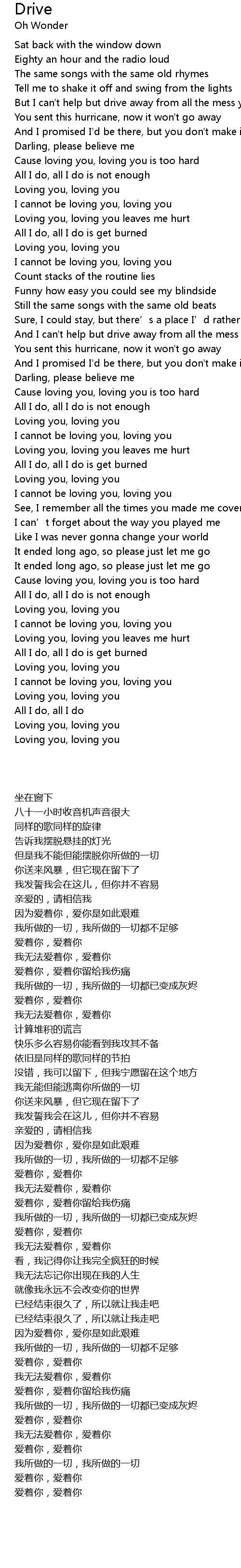 | [00:13.27] | But I can't help but drive away from all the mess you made |