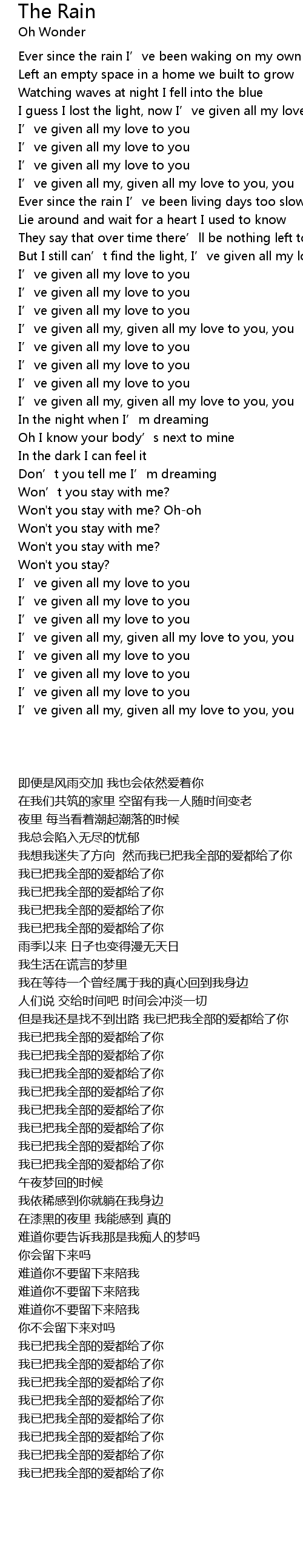 | [00:49.59] | I’ve given all my, given all my love to you, you |