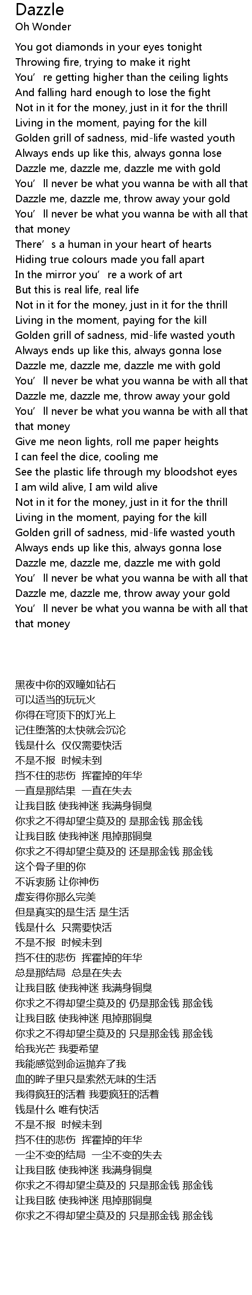 | [00:43.31] | Dazzle me, dazzle me, dazzle me with gold |