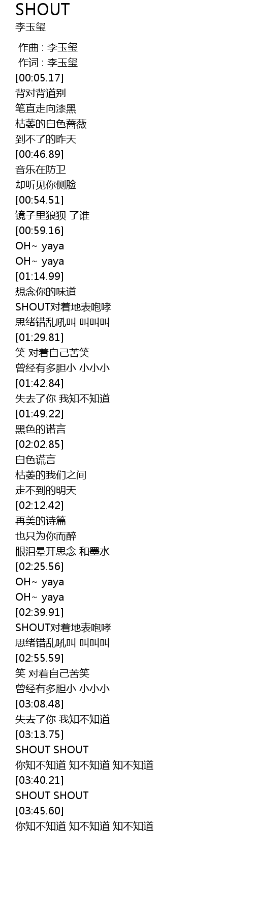 | [03:30.12] | SHOUT SHOUT |