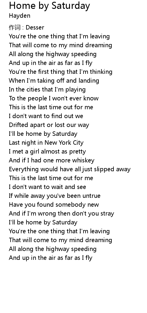 | I' ll be home by Saturday | |