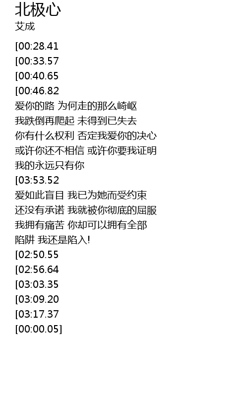 | [04:08.28][00:40.65] | 你不言不语 冷漠的如极地的冰 |