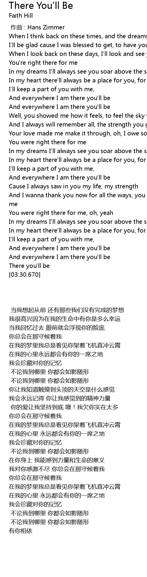 | [02:47.250] | In my dreams I' ll always see you soar above the skies |