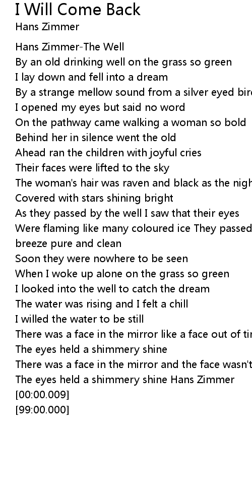 I Will Come Back Lyrics