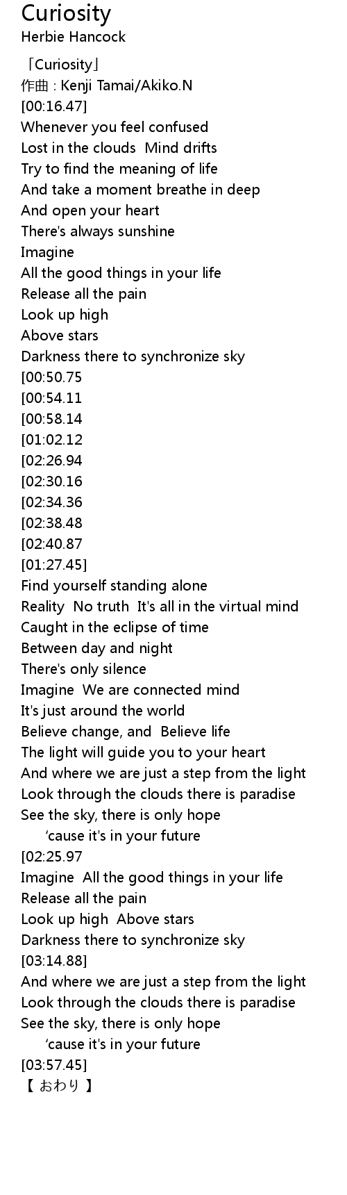 | [00:01.47] | 「Curiosity」 |
