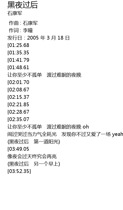 | [03:35.84][03:49.05] | (黑夜过后) |