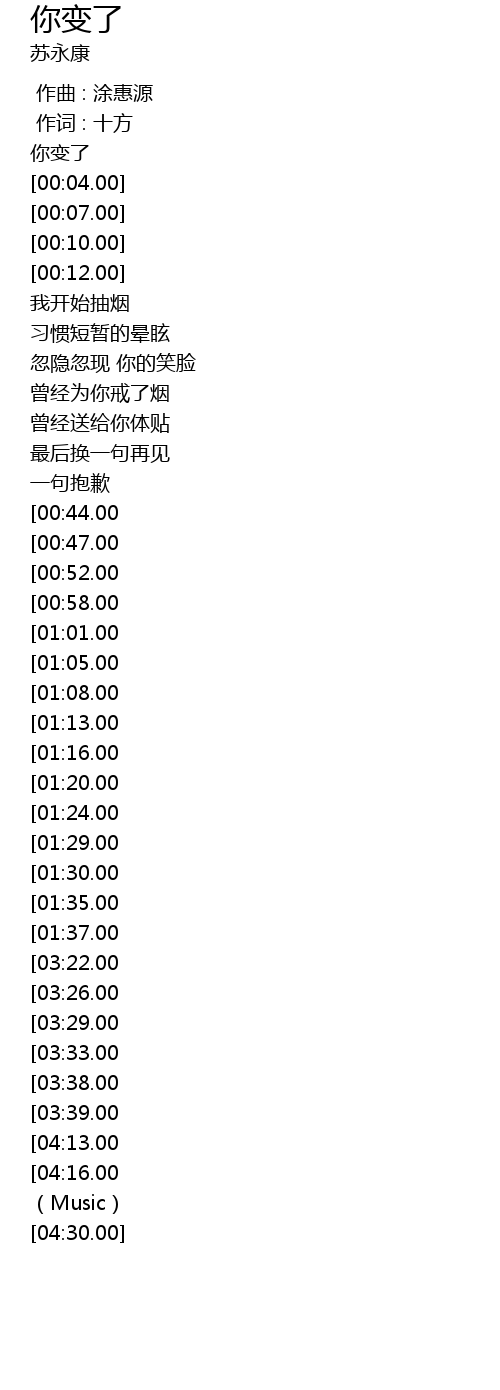| [03:52.00][03:22.00][01:42.00] | 为何你变了 我变了 |