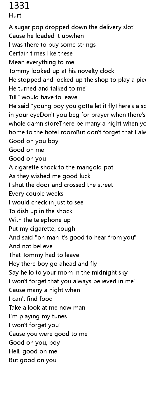 He said "young boy you gotta let it flyThere's a song in your lung and a dream in your eyeDon't you beg for prayer when there's so much moreYou can dream the whole damn storeThere be many a night when you can't find foodFrom the long road home to the hotel roomBut don't forget that I always believed in you" |