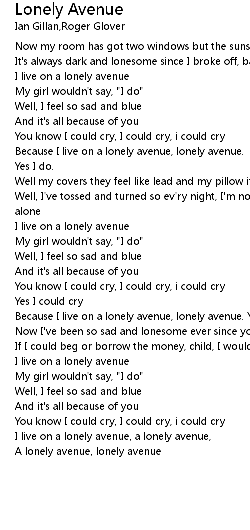 Because I live on a lonely avenue, lonely avenue. Yes I do. |