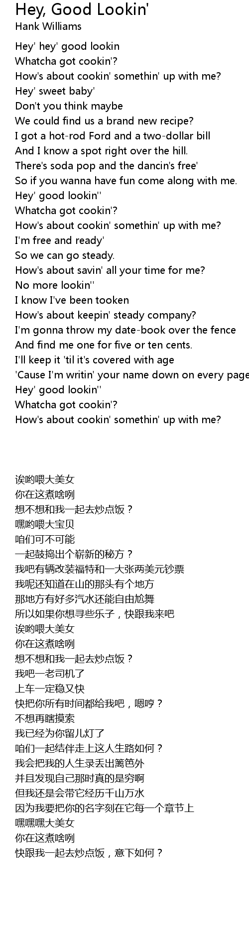 Hey' hey' good lookin |