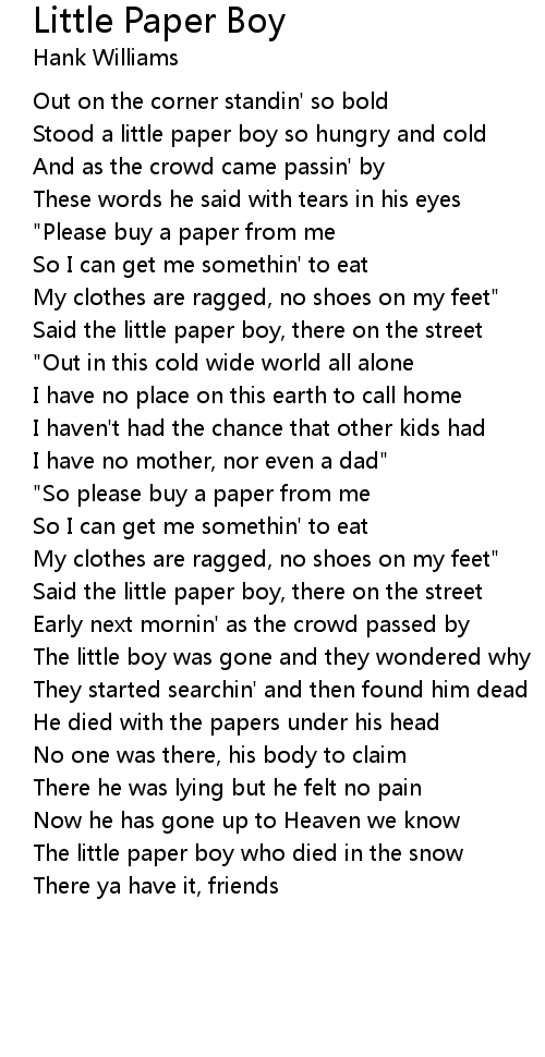 Stood a little paper boy so hungry and cold |