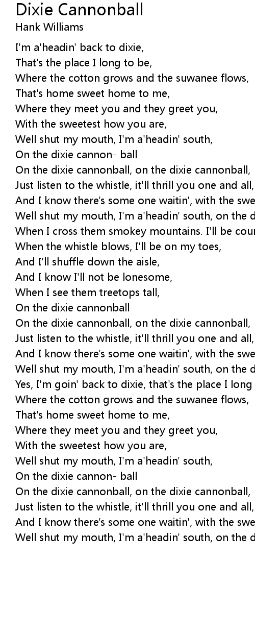 Well shut my mouth, I'm a'headin' south, on the dixie cannonball |
