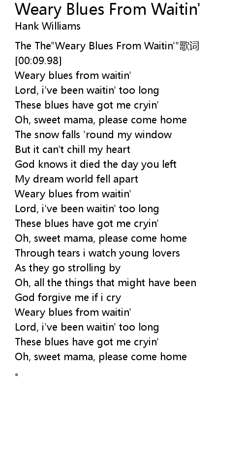 | [00:14.00] | Weary blues from waitin' |