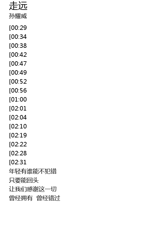 | [03:12][02:01][01:03] | qǐng nǐ zǒu dé yuǎn yuǎn de |