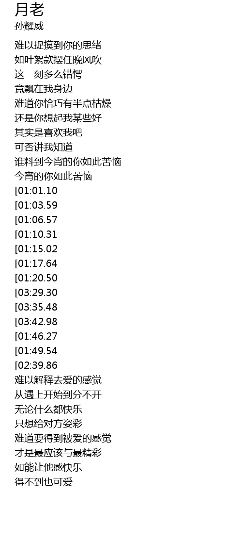 | [03:18.57][01:15.02] | 找不到月老 |