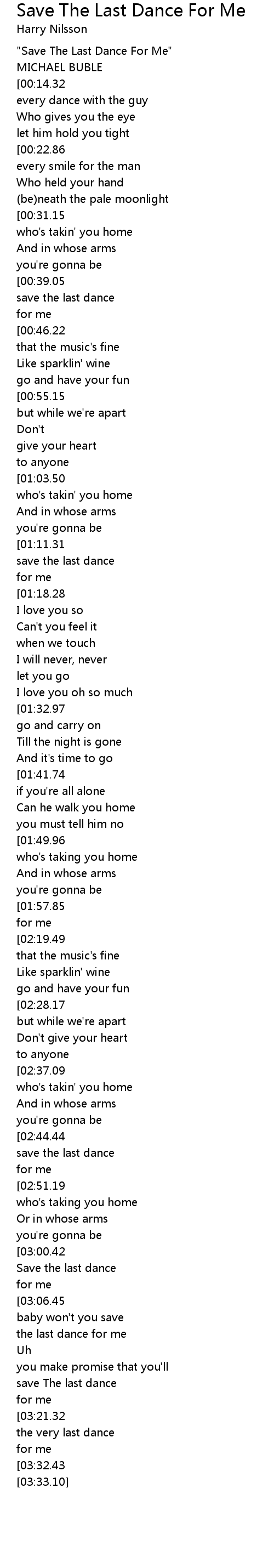 "Save The Last Dance For Me" |