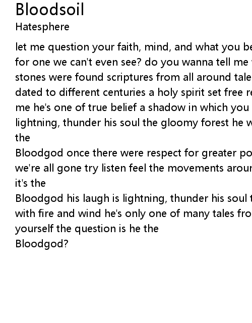 | Bloodgod once there were respect for greater power now we are left with one god we're all gone try listen feel the movements around you what makes it happen it's the | |