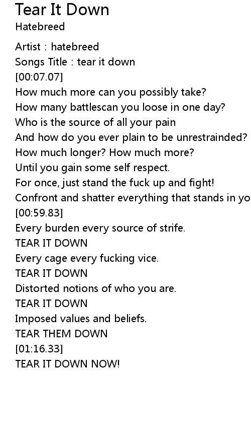 | [01:14.02] | TEAR THEM DOWN |