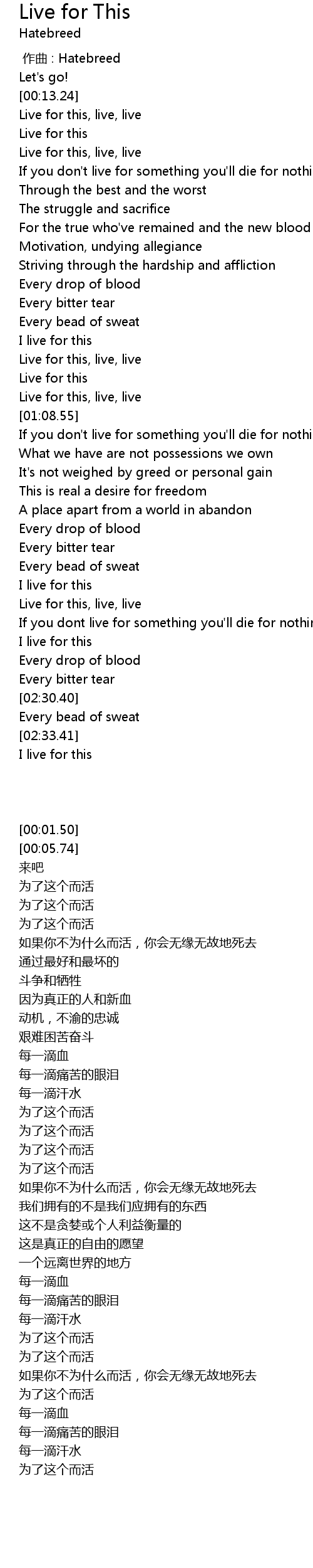 | [00:33.43] | If you don' t live for something you' ll die for nothing |