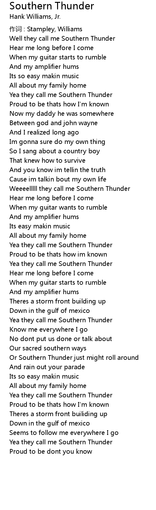 | Well they call me Southern Thunder | |