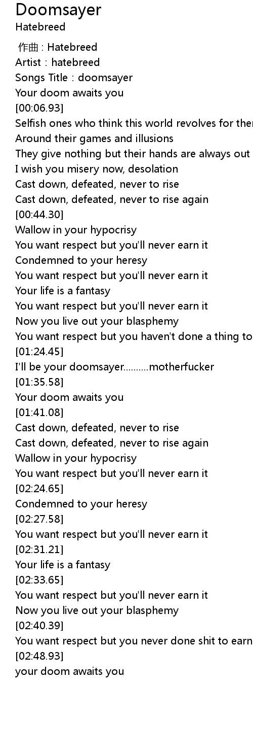 | [01:25.77] | I'll be your doomsayer..........motherfucker |