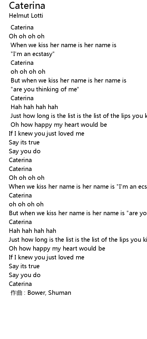 | [01:25] | But when we kiss her name is her name is " are you thinking of me" |