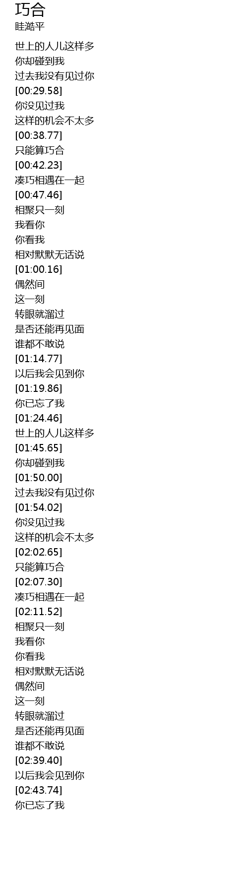 | [02:03.65] | zhǐ néng suàn qiǎo hé |