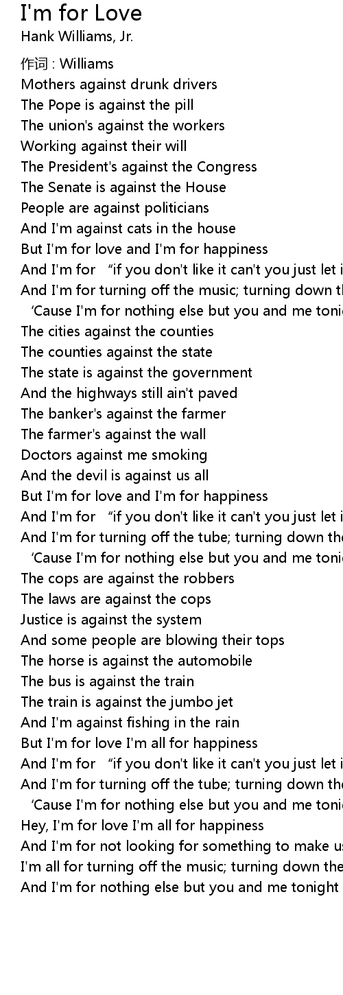 | But I' m for love I' m all for happiness | |