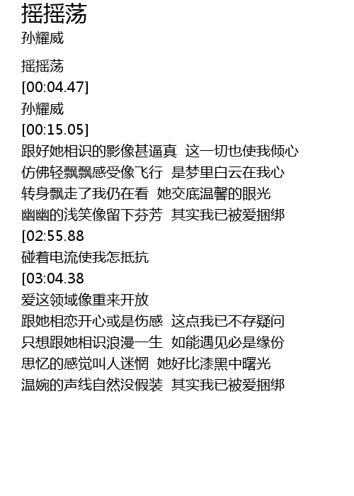| [00:00.02] | 摇摇荡 |