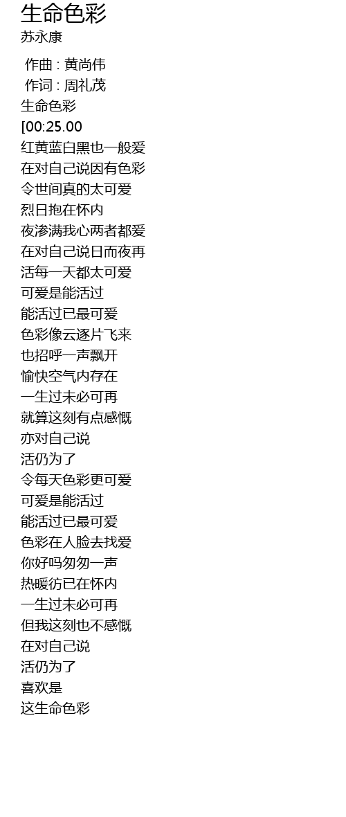 | [03:06.00] | zhè shēng mìng sè cǎi |