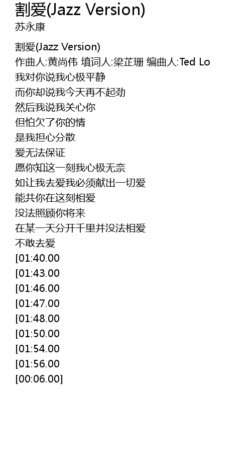 | [00:00.00] | 割爱(Jazz Version) |
