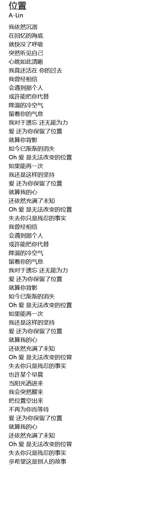 | [03:19.93] | Oh 爱 是无法改变的位置 |