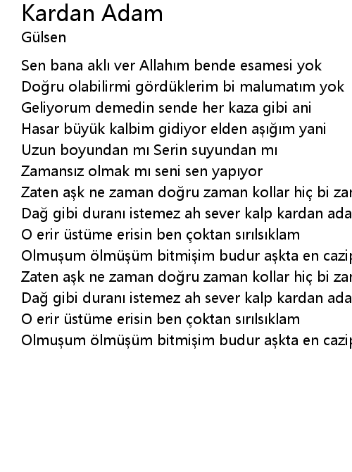 | Da gibi duran istemez ah sever kalp kardan adam | |