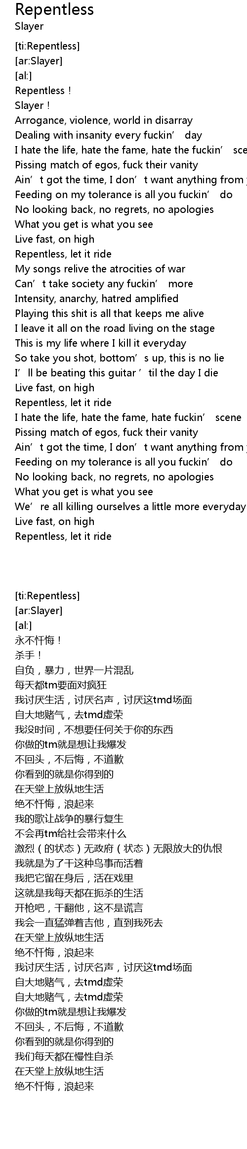 | [02:46.00] | Repentless, let it ride |