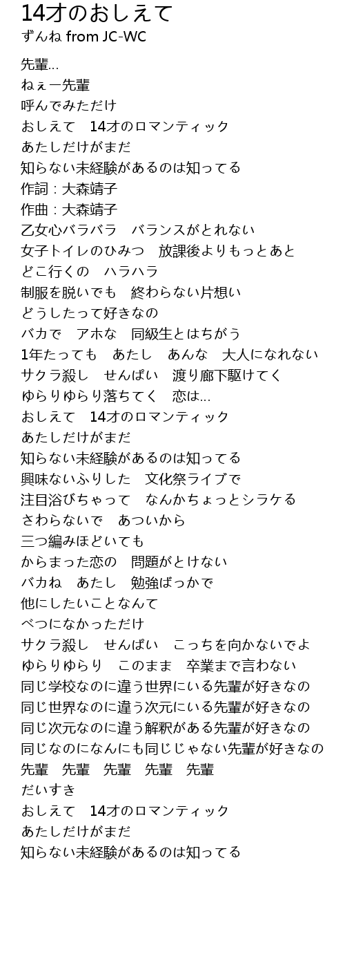 | [03:24.66] | 先輩 先輩 先輩 先輩 先輩 |